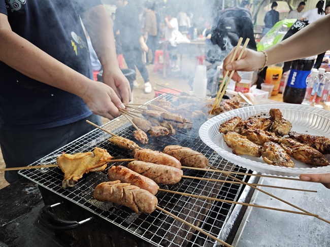 登山活動結(jié)束后,團隊來到指定的燒烤區(qū)域。各組分工明確,有的負責生火,有的準備食材,有的調(diào)制醬料,充分展現(xiàn)了華邦瀛人出色的團隊協(xié)作能力。炭火漸旺,香氣四溢,大家圍坐一起分享美食,交流登山心得,現(xiàn)場氣氛溫馨而熱烈。